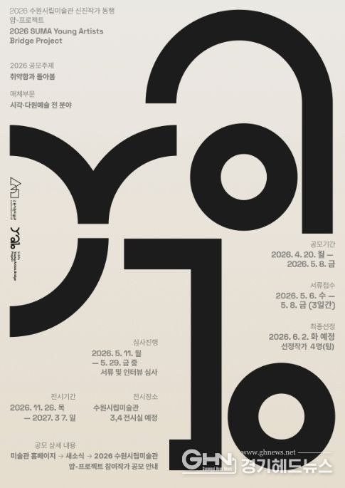 경기헤드뉴스 권준형 기자 | 경기도 수원시립미술관은 신진작가 발굴 및 창작 지원을 위한 공모 사업‘신진작가 동행 얍-프로젝트(YAB-Project)’를 개최하고 4월 20일부터 5월 8일까지 참여자 모집 공고를 시작한다. 서류 접수는 5월 6일부터 5월 8일 오후 6시까지 이메일을 통해 진행된다.