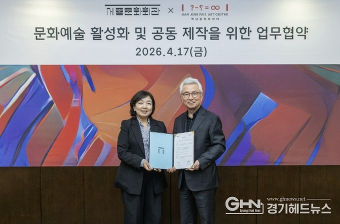 경기헤드뉴스 성미연 기자 | 경기문화재단 백남준아트센터와 재단법인 세종문화회관은 4월 17일, 동시대 예술의 담론 확장과 지속가능한 창작 생태계 조성을 위한 업무협약(MOU)을 체결했다. 이번 협약은 양 기관의 상호존중과 신뢰를 바탕으로, 서울과 경기 지역을 연결하는 광역 문화권 공동제작 모델을 구축하기 위한 협력의 출발점으로 마련됐다.