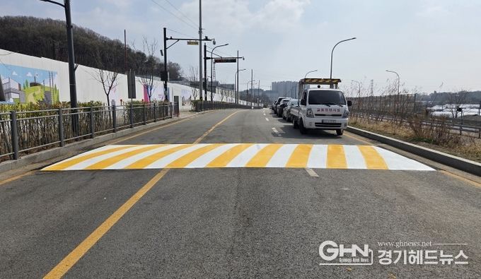 경기헤드뉴스 임수연 기자 | 오산시는 가수초등학교 통학로 안전 확보를 위해 인근 우미린 레이크시티 아파트 공사장 진출입로 주변에 과속방지턱 4개소를 신설했다고 밝혔다.
