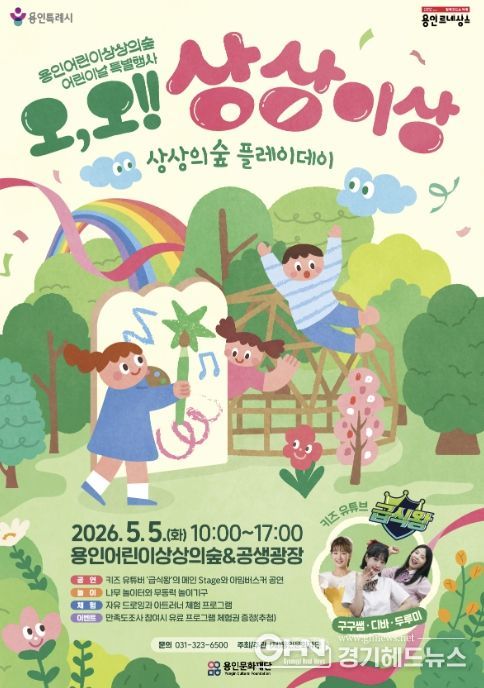 경기헤드뉴스 성미연 기자 | 용인문화재단은 오는 5월 5일 어린이날을 맞아 용인어린이상상의숲에서 2026년 어린이날 특별행사 ‘오, 오! 상상이상’을 개최한다고 밝혔다.