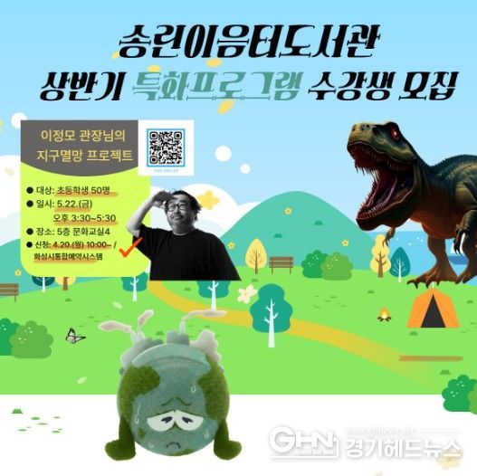 해당 특강 수강생 모집은 4월 20일 10시부터 화성시통합예약시스템(검색어: “지구멸망”)으로 이뤄지며, 대상은 초등학생이며 수강생의 정보로 입력해야 접수할 수 있다.