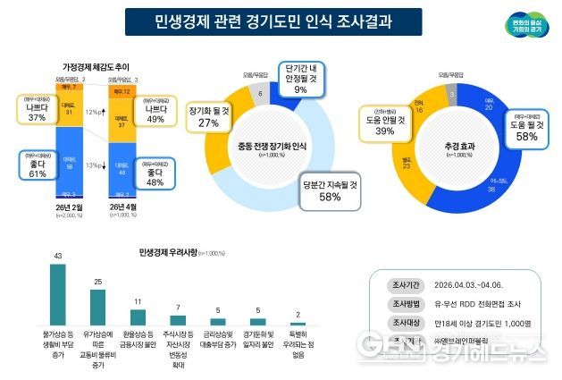 정두석 경기도 기획조정실장은 “가정 경제 형편이 두 달 만에 급격히 나빠졌다는 조사 결과는 현재 민생 현장의 어려움을 보여준다”며 “추경 예산이 빠르게 집행될 수 있도록 도의회와 긴밀히 협의하여 고유가와 고물가로 고통받는 도민들의 부담을 덜어드리도록 하겠다”고 밝혔다.