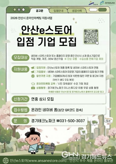 경기헤드뉴스 임채헌 기자 | 안산시는 관내 중소기업의 판로 확대와 홍보 강화를 위해 안산시 우수 제품 온라인 홍보관 ‘안산e스토어’에 신규 입점할 기업을 모집한다고 23일 밝혔다.