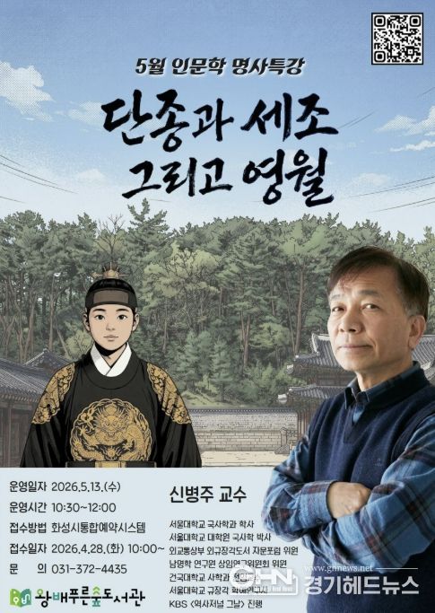 경기헤드뉴스 임수연 기자 | 화성시문화관광재단 운영하는 왕배푸른숲도서관이 오는 5월 13일, 지역 주민들을 위해 역사학자 신병주 교수를 초청하여 5월 인문학 명사특강을 개최한다.