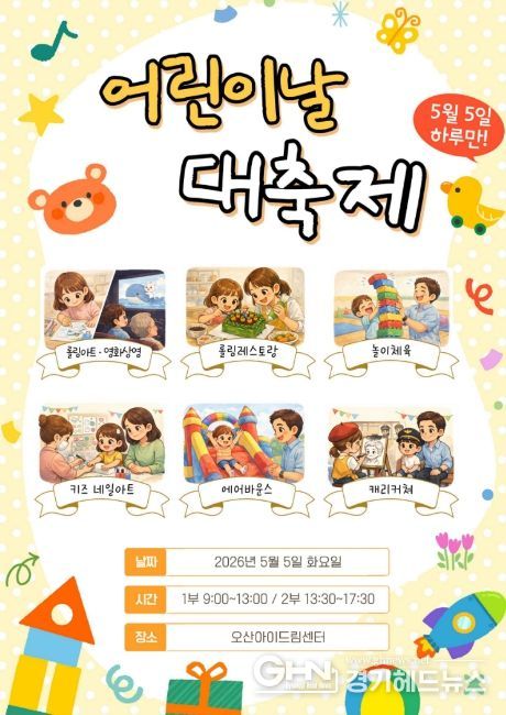 경기헤드뉴스 임수연 기자 | 오산시가 운영하는 오산아이드림센터가 어린이날을 맞아 온 가족이 함께 즐길 수 있는 특별 체험행사를 마련한다.