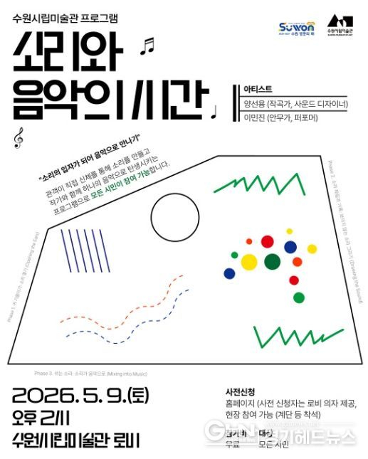 경기헤드뉴스 권준형 기자 | 경기도 수원시립미술관은 을 맞아 소리를 주제로 한 음악 프로그램 '소리와 음악의 시간'을 5월 9일 개최하며 참여자를 모집한다.
