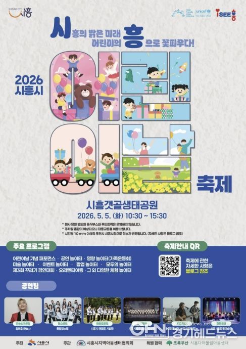 경기헤드뉴스 임채헌 기자 | 시흥시는 오는 5월 5일 어린이날을 맞아 시흥갯골생태공원에서 ‘제104회 어린이날 기념행사’를 개최한다.