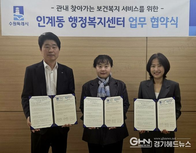 경기헤드뉴스 권준형 기자 | 수원시 팔달구 인계동은 지난 24일, 지역사회보장협의체과 한전MCS(주) 경기지사 및 직할지점과 함께 취약계층 발굴과 지속적인 인적안전망 활동 참여를 위한 업무 협약을 체결했다.