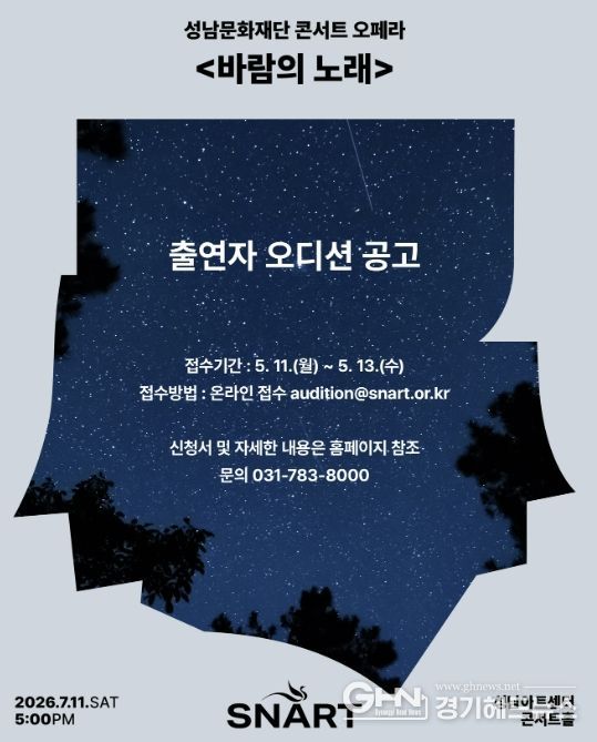 경기헤드뉴스 권준형 기자 | 성남문화재단은 콘서트 오페라 ‘바람의 노래’ 무대를 빛낼 주역 성악가를 선발하는 오디션을 개최한다.