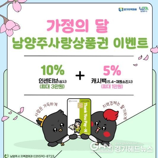 경기헤드뉴스 권민성 기자 | 남양주시는 남양주사랑상품권 인센티브 예산을 확대하고 5월 가정의 달을 맞아 특별 혜택을 제공한다고 27일 밝혔다.