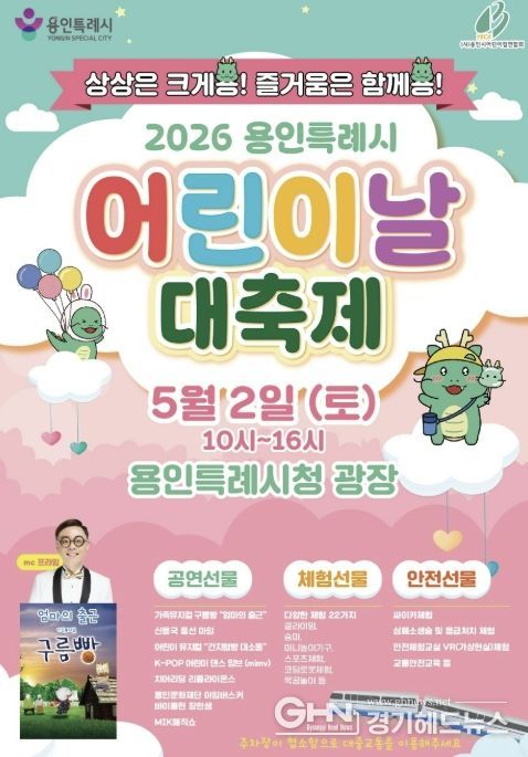 경기헤드뉴스 성미연 기자 | 용인특례시는 5월 2일 오전 10시 시청 야외광장에서 ‘어린이날 대축제’를 연다고 28일 밝혔다.