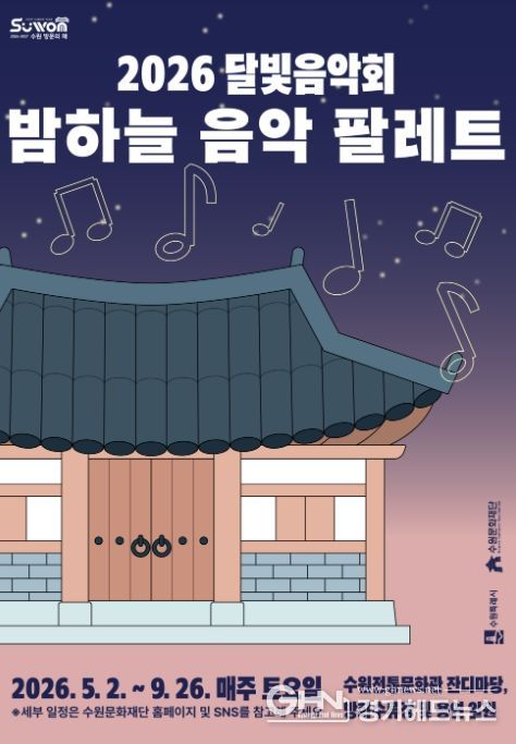 경기헤드뉴스 권준형 기자 | 수원문화재단은 오는 5월부터 9월까지 국가유산과 자연, 음악이 어우러진 야간 공연 프로그램 '2026 달빛음악회 '밤하늘 음악 팔레트'’를 운영한다.