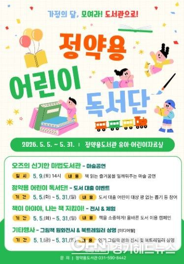 경기헤드뉴스 권민성 기자 | 남양주시는 가정의 달을 맞아 5월 5일부터 31일까지 정약용도서관에서 ‘모여라! 정약용 어린이 독서단’ 행사를 운영한다고 28일 밝혔다.