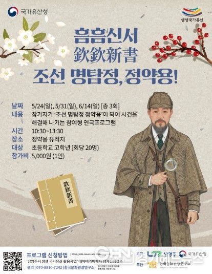 경기헤드뉴스 권민성 기자 | 남양주시는 오는 5월 24일과 31일, 6월 14일 정약용 유적지에서 초등학교 고학년을 대상으로 참여형 연극 프로그램 ‘흠흠신서: 조선 명탐정, 정약용!’ 참가자를 모집한다고 밝혔다.