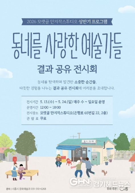 경기헤드뉴스 임채헌 기자 | 시흥시는 오는 5월 13일부터 24일까지 문화재생공간 모랫골 만지작스튜디오에서 2026년 상반기 프로그램 ‘동네를 사랑한 예술가들’ 결과 공유 전시를 개최한다.