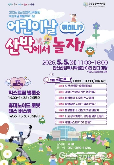 경기헤드뉴스 임채헌 기자 | 안산시는 내달 5일 어린이날을 맞아 안산산업역사박물관에서 어린이날 특별프로그램 ‘어린이날 뭐하니? 산박에서 놀자!’를 개최한다고 29일 밝혔다.