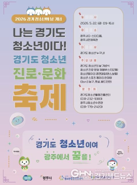 경기헤드뉴스 권민성 기자 | 광주시는 오는 5월 22일 광주시 G-스타디움 및 광주시민체육관 일원에서 ‘2026년 경기도 청소년 진로·문화 축제’를 개최한다고 29일 밝혔다.