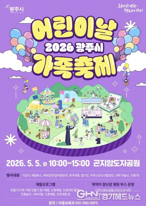 시 관계자는 “어린이날 가족축제가 아이들에게 꿈과 희망을 키우는 특별한 하루가 되고 가족 모두에게 소중한 추억이 되길 바란다”며 “앞으로도 어린이들이 건강하고 행복하게 성장할 수 있는 환경을 조성해 아동친화도시 광주시를 만들어 나가겠다”고 말했다.