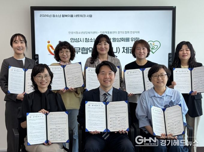 경기헤드뉴스 이현규 기자 | 안성시청소년상담복지센터는 지난 27일 안성맞춤공감센터에서 다함께돌봄센터 경기도협의회 안성지회와 청소년의 건강한 성장과 복지 증진을 위한 업무협약(MOU)을 체결했다.
