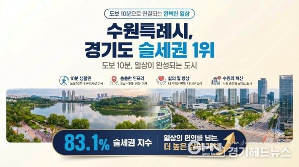 경기헤드뉴스 권준형 기자 | 수원특례시가 경기도에서 가장 살기 편한 ‘슬세권 명당’이라는 분석 결과가 나왔다.