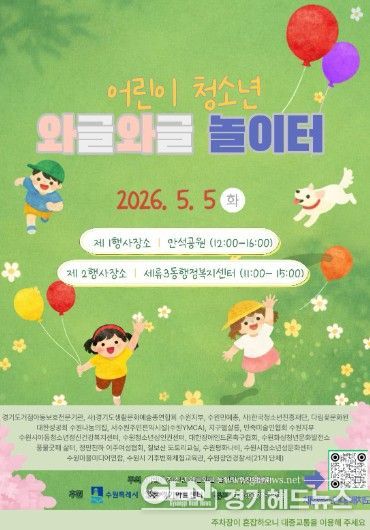 이번 행사는 어린이·청소년 와글와글 놀이터 추진위원회가 주최·주관하고 수원특례시와 경기아트센터가 후원한다.