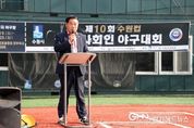 경기헤드뉴스 성미연 기자 | 수원특례시의회는 10월 19일 황구지천야구장에서 열린 ‘제10회 수원컵 전국 사회인 야구대회 개회식’에 참석해 선수들을 격려했다. 이번 대회는 경기일보가 주최하고 수원시야구소프트볼협회가 주관했으며, 전국 사회인 44개 팀이 참가해 뜨거운 열정 속에 경기를 펼쳤다. 이날 행사에는 이재식 의장, 김정렬 부의장을 비롯한 오세철 예산결산특별위원장, 김동은 의원이 함께해 선수단을 응원하며, 전국 각지에서 모인 야구 동호인들과 교류의 시간을 가졌다. 이재식 의장은 축사에서 “직장과 가정을 오가며 바쁜 일상 속에서도 야구에 대한 열정으로 최선을 다하는 선수 여러분께 진심 어린 박수를 보낸다”며 “이번 대회가 지역과 세대를 넘어 우정을 나누는 축제가 되길 바란다.”고 말했다.