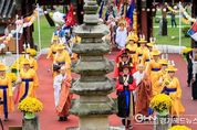 경기헤드뉴스 임수연 기자 | 화성특례시는 10월 18일, 용주사(주지 성효 스님) 일원에서 민족의 평화와 안녕을 기원하는 불교 전통의례 ‘불기 2569년 수륙대재’를 봉행했다고 밝혔다. 수륙대재는 물과 육지에서 떠도는 외로운 무주고혼들을 위로하고 구제하기 위해 부처님의 가르침을 설하고 음식을 공양하는 불교의식이다. 용주사는 고려시대부터 이어져온 이 전통문화를 현대에 되살리고 시민들의 문화 향유 기회를 확대하고자 2017년부터 수륙대재를 정기적으로 봉행해오고 있다. 특히 올해 용주사 수륙대재는 역사성을 한층 더 부각시켰다는 평을 받았다. 영가들을 맞는 시련의식을 시작으로 옛 수륙재가 그러했듯 왕의 교지와 하사품을 전달하는 역할을 화성특례시장(정명근 시장)이 진행하여 전통문화 고증에 신경을 쏟은 모습이였다. 그 후로는 영가를 대접하고 깨끗하게 목욕시키는 대령, 관욕 의식, 수륙재 공간을 정돈하고 설행 공간을 정하는 사자단과 오로단, 상단과 중단, 하단의식, 등 불교 전통 의례의 정수를 보여주었다. 정명근 화성시장은 축사에서“정조대왕의 효심과 애민 정신이 녹아있는 용주사에서 진행되는 수륙대재의 의미와