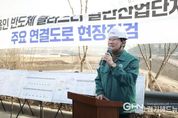 경기헤드뉴스 성미연 기자 | 이상일 용인특례시장은 11일 처인구 원삼면 일원에 조성 중인 용인반도체클러스터 일반산업단지와 인근 산업·생활권을 연결하는 주요 도로의 임시 개통을 앞두고 공사 현장을 점검했다. 시는 용인반도체클러스터의 안정적 교통 여건을 확보하기 위해 지방도 318호선 2차로를 6차로로 확장하는 사업(3.4km)을 비롯해 국지도 57호선 2차로→4차로 확장 및 선형 개선(2.9km), 보개원삼로 2차로→4차로 확장(1.8km), 산업단지 주출입도로 4차로 신설(1km) 등 4개 구간의 도로 공사를 진행하고 있다. 이번 점검은 지난 10월 말 1차 임시 개통에 이어 올해 연말부터 도로별로 순차적으로 이뤄질 2차 임시 개통을 앞두고 공사 상황과 안전 관리 체계를 살피기 위해 진행됐다. 현장에는 이상일 시장을 비롯해 용인일반산업단지(주), SK에코플랜트(주), 거성종합건설(주) 등 사업시행자와 시공사 관계자들이 참석했다. 이상일 시장은 국지도 57호선을 따라 이동해 산업단지 주출입도로에서 도로 공사 현황과 산업단지 공정 진행 상황에 대해 현장 브리핑을 받은 뒤 지방도 318호선을 거쳐 보