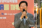 경기헤드뉴스 성미연 기자 | 이상일 용인특례시장은 17일 오후 용인시 평생학습관 광장에서 열린 ‘제6회 용인시 평생학습박람회’에 참석해 평생학습 관계자들을 격려하고 시민들과 소통했다. 이번 박람회는 ‘용인, 학습 D·N·A를 깨워라!’를 주제로 시민이 주체가 돼 배우고 나누는 평생학습 문화를 확산하기 위해 마련된 행사로, 17일부터 18일 오후 3시까지 평생학습관 광장 일원에서 진행된다. 이 시장은 이날 기념식에 참석해 평생학습의 지속과 발전에 기여한 유공자 3명에게 표창장을 수여하고, 시민들과 함께 배움을 통한 성장과 실천, 연대의 의미를 공유하는 ‘용인 학습 D·N·A를 깨워라!’ 퍼포먼스에 참여했다. 이상일 시장은 인사말을 통해 “오늘 전시된 다양한 평생학습 결과물은 시민들이 스스로 배움을 이어가며 만들어낸 값진 결과물”이라며 “행사를 위해 애써주신 평생학습 관련 기관 관계자와 강사, 학습자, 수상자 여러분께 깊이 감사드린다”고 말했다. 이 시장은 이어 “평생 학습은 배우는 사람뿐 아니라 가르치는 분들 모두가 함께 성장하고 행복을 느낄 수 있는 과정”이라며 “숨을 쉬는 한 계속 배우고, 배