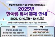 경기헤드뉴스 임수연 기자 | 수원시청소년청년재단 수원청소년문화센터 한아름도서관은 2025. 독서의 달을 기념하여‘한아름독서축제’를 10월 10일부터 10월 19일까지 운영한다. 이번 독서축제는 △스피치 강사와 함께하는 북토크 강연 △동화구연 공연 △재미 두배 1+1 체험활동 △원화 명화 전시 △도서관 이용자 대출 이벤트 등 청소년과 지역주민이 함께 공감하며 즐길 수 있는 다양한 프로그램으로 구성했다. △스피치 강사와 함께하는 북토크 강연 △동화구연 공연은 사전접수를 통해 참여가 가능하며, 재미 두배 1+1 체험 활동은 별도 접수 없이 현장에서 선착순 참여로 가능하다. 참가비는 전액 무료이다. 사전접수는 10월 1일 수요일부터 선착순으로 모집하며, 신청 방법은 수원시청소년청년재단 홈페이지‘한아름독서축제’안내문의 QR코드로 접속하여 신청할 수 있다. 한아름도서관은 이번‘한아름독서축제’를 통해 청소년과 지역주민의 독서 문화를 장려하고 도서관 활성화를 도모하고자 한다.