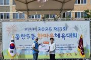 경기헤드뉴스 임수연 기자 | 지난 21일 ‘제3회 동탄5동 한마음 체육대회’가 동탄5동 체육진흥회 주관으로 다원이음터 축구장에서 성황리에 개최됐다. 이번 대회는 주민들의 화합과 소통을 통해 건강을 증진하고 공동체 의식을 다지기 위해 마련됐으며, 400여 명의 주민과 내빈들이 함께해 활기찬 분위기를 더했다. 행사는 풍물 공연과 색소폰 연주로 흥겨운 막을 올렸고, 개회식에서는 모범시민 표창 수여와 내빈들의 축사가 이어졌다. 또한, 동탄5동 체육진흥회와 감탄정형외과가 의료 지원·후원 협약을 체결해 향후 체육대회를 비롯한 다양한 동 행사에서 의료 지원과 후원을 지속하기로 약속하며 지역사회 상생의 의미를 더했다. 본 경기는 볼풀공 서바이벌, 큰 공 배구, 줄다리기 등 남녀노소가 모두 참여할 수 있는 명랑운동회 종목으로 진행돼 웃음과 열기가 가득했다. 이어진 태권도 축하공연은 참가자들에게 힘찬 에너지를 전하며 분위기를 한층 끌어올렸다. 또한 체험부스 운영과 경품 추첨 이벤트도 마련돼 가족 단위 참가자들에게 다채로운 즐길 거리를 제공했다. 풍성한 상품과 이벤트는 주민들의 큰 호응을 얻으며 축제의