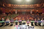 경기헤드뉴스 성미연 기자 | 김동연 경기도지사가 17일 부산에서 열리는 제106회 전국체육대회에 참가하는 경기도선수단의 4연패를 기원하며 모든 지원을 아끼지 않겠다는 뜻을 밝혔다. 김동연 지사는 30일 오후 수원월드컵경기장 중앙광장에서 열린 전국체육대회 결단식에서 “경기도는 전국체육대회 3연패, 동계 체육대회 22연패를 이뤘다. 경기도 선수단과 경기도 체육인들이 이룬 성과로 이와 같은 영광 뒤에는 1,420만 도민의 한결같은 지원이 있었다”며 “경기도는 1,420만 도민과 함께 여러분들이 오로지 훈련과 경기에 집중할 수 있도록 모든 지원을 아끼지 않겠다”고 말했다. 김 지사는 이어 결단식이 열린 중앙광장을 경기도선수촌 건립예정지라고 소개한 후 “차질 없이 건립하겠다. 우리 선수단뿐만 아니라 후배들도 무한한 가능성을 발휘할 수 있는 대한민국 체육의 요람으로 이곳을 만들겠다”고 구체적 지원계획도 밝혔다. 그러면서 “여러분들이 흘린 땀, 또 좌절의 순간에도 일어섰던 불굴의 용기가 부산 전국 체육대회에서 좋은 실력과 성과로 이어지길 바란다”며 “전국체육대회 4연패를 응원한다”고 격려했다. 이날 행사에는