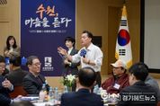 경기헤드뉴스 성미연 기자 | 3일 행궁동 선경도서관 강당에서 열린 27번째 새빛만남. 49년 동안 부녀회장으로 활동하고 있다는 전영숙 행궁동 새마을부녀회장이 질문 기회를 얻었다. 전영숙 회장은 12년 전 행궁동에서 열린 생태교통 수원 2013 축제 준비 과정을 회상하며 “낙후됐던 행궁동을 수많은 사람이 찾는, 아름다운 마을로 바꿔준 수원시에 감사드린다”고 말했다. 이재준 시장은 “주민들이 협조해 주신 덕분에 생태교통 수원 2013을 잘 치를 수 있었고, 축제 이후 행궁동은 전국적으로 이름이 알려진 명소가 됐다”고 말했다. 행궁동 새빛만남은 그 어느 때보다 주민들의 질문 열기가 뜨거웠다. 질문할 주민을 지목할 때마다 10여 명이 손을 들었다. 이날 새빛만남에서는 생태교통 수원 2013에 관한 이야기가 많이 나왔다. 수원시는 낙후되고 침체했던 행궁동 일원을 정비해 2013년 9월 세계 최초로 ‘생태교통 수원 2013’ 축제를 열었다. 축제가 열리는 한 달 동안 행궁동은 ‘차 없는 마을’로 운영해야 했고, 주민들은 반대했다. 수원시는 행궁동에 현장 사무소를 설치했고, 당시 제2부시장이었던 이재준 시장과 공직자들은 주민들을 일일이 설득했다. 축제 이후 행궁동은 수많
