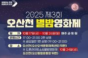 경기헤드뉴스 임수연 기자 | 오산시는 오는 10월 17일부터 26일까지 매주 금·토·일 저녁, 오산천(오색문화체육센터 뒤편)에서 시민들이 야외에서 영화를 즐길 수 있는 '2025 제3회 오산천 별밤영화제'를 개최한다고 밝혔다. 이번 영화제는 남녀노소 누구나 즐길 수 있는 총 10편의 애니메이션과 영화를 상영하며, 오산천을 방문하는 시민이라면 누구나 자유롭게 관람할 수 있다. 특히 올해는 관람객 편의를 위해 ‘배달음식 픽업존’을 운영하여, 휴대폰 앱으로 주문한 음식을 지정된 장소에서 간편하게 수령할 수 있다. 관람객들은 돗자리나 방석 등을 지참해, 자연 속에서 맛있는 음식과 함께 여유로운 영화 관람을 즐길 수 있다. 시 관계자는 “도심 속 자연과 문화가 조화를 이루는 오산천에서 열리는 이번 별밤영화제가 시민들에게 힐링과 특별한 문화 체험의 기회가 되길 바란다”고 전했다.