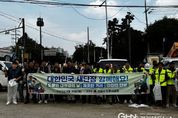 경기헤드뉴스 성미연 기자 | 성남시의회 더불어민주당 이군수 의원(신흥2·3동, 단대동)은 10월 13일 오전, 비가 내리는 가운데 ‘서은경 행정교육위원장 불신임 저지’와 행정교육위원회‘행정감사 정상화’를 촉구하는 출근길 런닝 시위를 진행했다. 이 의원은 이날 오전 7시 30분 자택을 출발해 ‘부정선거! 국민의힘 해산!’, ‘후안무치한 국민의힘 사퇴!’, ‘서은경 위원장 불신임 원천무효!’ 등의 구호가 적힌 주황색 조끼를 착용하고 성남시청까지 약 8km 구간을 달리며 시민들에게 현 사태의 부당함을 알렸다. 비가 내리는 궂은 날씨에도 불구하고, 이 의원은 “시청 앞에서 홀로 1인 피켓 시위를 이어가고 있을 서은경 위원장을 생각하며 묵묵히 뛰었다”며 “버스 안이나 정류장에 있던 시민들이 저의 조끼와 피켓 메시지를 보고 지금 성남시의회에서 벌어지고 있는 일들을 조금이라도 생각해 주셨기를 바란다”고 밝혔다. 이 의원은 또한 성남시의회 국민의힘의 연이은 일탈행위—의장선거 금품수수 의혹 및 구속사태, 비밀투표 위반, 행정감사 보이콧을 위한 상임위 파행 주도 등—를 강하게 비판하며 “이러한 행태가 시의회의 신뢰를 무너