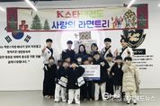 경기헤드뉴스 권준형 기자 | 수원시 영통구 망포1동은 지난 12일, K스타태권도에서 어려운 이웃에게 전해달라며 원생들이 자발적으로 모은 라면 1,004봉지를 후원했다고 밝혔다. 지난해에 이어 어려운 이웃을 돕고자 ‘사랑의 라면트리’를 만들어 이웃사랑 나눔을 실천하고 있는 K스타태권도에서는 천사같은 원생들의 따뜻한 마음을 표현하고자 올해에도 라면 1,004봉지를 모아서 기탁했다. 이주한 관장은 “아이들이 기부를 거창하고 부담스럽게 않게 생각하도록 라면으로 나눔활동을 한 지 올해 2회째인데, 흔쾌히 마음을 모아준 아이들에게 감사하게 생각한다. 앞으로도 지역사회에 도움이 될 수 있다면 아이들과 함께 언제든지, 무엇이든지 적극적으로 참여하고 봉사할 예정이다”라고 말했다. 이에 김영희 망포1동장은 “지난해에 이어'라면트리'로 나눔 문화가 확산될 수 있도록 후원을 이어주시는 관장님과 원생들에게 감사드리며, 후원해 주신 라면은 간편식이 필요한 분들께 아이들의 천사같은 착한 마음까지 잘 전달드리겠다”고 말했다. 한편, 망포1동 행정복지센터는 후원받은 라면과 컵라면을 식사준비에 어려움을 겪고 있는 저소득 취약계