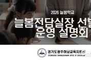 경기헤드뉴스 성미연 기자 | 경기도광주하남교육지원청은 11월 6일, 관내 초등학교 교원을 대상으로‘2026 늘봄전담실장 선발 및 운영 설명회’를 온라인 화상회의 방식으로 개최했다. 이번 설명회는 늘봄전담실장 제도에 대한 이해를 높이고, 현장 중심의 정책 추진 방향을 공유하기 위해 마련됐다. 설명회에서는 △2026년 늘봄전담실장 임용후보자 선발 공개전형 시행 요강 △늘봄학교 정책 방향 및 추진 현황 △늘봄전담실장의 주요 직무와 역할 △거점형 늘봄센터 운영 체계 등 실질적인 내용을 중심으로 안내가 이루어졌다. 특히 1기 늘봄전담실장이 직접 참여해 학교별 운영 사례와 경험을 공유함으로써, 참여 교원들이 현장의 실제 운영 방식과 역할 수행의 구체적인 모습을 이해할 수 있는 뜻깊은 시간이 됐다. 현재 광주하남교육지원청 관내에는 총 17명의 늘봄전담실장이 49개 학교의 늘봄학교 운영을 지원하고 있으며, 내년에는 2기 늘봄전담실장 추가 선발을 통해 학교별 맞춤형 지원 체계를 한층 강화할 예정이다. 오성애 교육장은 “이번 설명회가 늘봄전담실장의 전문성과 현장 지원 역할을 널리 알리는 계기가 되길 바란다”며,