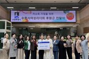 경기헤드뉴스 성미연 기자 | 수원시여성리더회가 16일 수원시청 본관 1층에서 저소득가정을 위한 후원금 300만 원을 수원시에 전달했다. 후원금은 형편이 어려운 가정에 지원할 예정이다. 전달식에는 김은주 수원시 여성가족국장, 김수민 수원시여성리더회 총회장 등이 참석했다. 김수민 총회장은 “우리 여성리더회 임원진과 회원들의 따뜻한 마음을 모았다”며 “형편이 어려운 가정에 그 마음이 잘 전달되길 바란다”고 말했다. 수원시여성리더회는 수원시 양성평등기금 사업으로 운영되는 ‘수원시 여성지도자대학’ 수료생들로 구성된 단체다. 여성의 권익 증진과 복지 향상, 지역사회 발전을 목표로 2004년 12월 출범했다. 수료생 1240명이 활동 중이며, 매년 저소득가정 후원금과 물품 기부, 한부모가정 지원, 지역 복지시설 봉사활동 등 다양한 사회공헌 활동을 하고 있다.