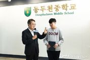 경기헤드뉴스 성미연 기자 | 김동연 경기도지사가 16일 동두천중학교를 찾아 노점 할머니께 비상금을 건넨 선행으로 화제가 된 옥현일 군에게 표창을 수여했다. 김 지사는 학교 현관에서 학생회와 함께 ‘함께라서 더 빛나는 우리’ 생명존중 캠페인에 동참하고, 이어 1층 로비에서 옥현일 군에게 표창장을 전달했다. 옥현일 군은 지난 7월 폭염 속에서 노점상 할머니에게 비상금 3만 원을 건네고 콩 한 봉지를 받은 사연이 알려지며 주목받았다. SNS에 게시된 영상은 인근 공방 운영자가 촬영한 것으로, 현일 군이 남모르게 베푼 선행이 담겨 3일 만에 206만 조회수, ‘좋아요’ 약 7만, 댓글 2,500개 이상을 기록했다. 당시 현일 군은 “더운 날씨에 할머니가 물건을 빨리 팔고 쉬셨으면 좋겠다는 마음이었다”고 말해 많은 시민에게 감동을 줬다. 김동연 지사는 이날 인사말을 통해 “옥현일 군이 도운 할머니가 우리의 어머니, 할머니”라며 “수많은 옥현일 군이 동두천중에 있다고 본다. 그것이 사람 사는 세상”이라고 말했다. 이어 “여러분이 그런 따뜻한 마음을 갖길 바란다. 당장은 남을 위한 배려 같지만