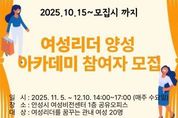 경기헤드뉴스 성미연 기자 | 안성시는 지역사회 발전을 이끌 열정있고 능력있는 여성 지도자를 발굴·육성하기 위해 ‘2025년 안성시 여성리더 양성 아카데미’ 기본과정 교육 참가자를 모집한다. 이번 아카데미는 적극적으로 참여할 수 있는 여성 시민 누구나 신청할 수 있으며, 신청기간은 오는 10월 15일부터 시작된다. 교육은 11월 5일부터 12월 10일까지 6주간 매주 수요일에 안성시여성비전센터 (발화대길 25) 1층 공유오피스에서 진행 될 계획이다. 교육 내용은 ‘나는 당신이 행복했으면 좋겠습니다.’ 라는 주제로 김경희 강사의 행복소통 리더십 강의로 개강식을 열고 2~3주차는 감성을 담아 나를 알리는 SNS 활용법 이론편과 실습편, 4~5주차에는 나만의 비서 만들기 챗봇과 생성형 AI교육 이론편과 실습편을 구성하여 최신 트렌드에 맞춘 리더 역량 강화를 위한 강의들로 구성했으며 6주차에는 퍼실리테이션 기법을 활용하여 지역 내 현안 문제를 파악하고 리더로서 해결 방법을 제시하는 과정을 마지막으로 수료식을 가질 예정이다.
