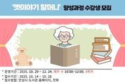 경기헤드뉴스 임수연 기자 | 안성시 중앙도서관은 오는 10월 29일부터 12월 24일까지 매주 수요일 오전 10시부터 12시까지(총9회) 진행되는 『옛이야기 할머니』양성과정의 수강생을 모집한다. 이번 과정은 우리 전통 설화와 구전문화를 이해하고, 이를 바탕으로 어린이들에게 옛이야기를 들려줄 수 있는 이야기 구연 역량을 키우는 특화 교육 프로그램으로 교육은 송경애 강사(한국국학진흥원 및 아름다운 이야기 할머니 교육강사)가 진행하며, 이야기 전달 기법, 발성 훈련, 스토리텔링 실습 등 실질적인 교육 중심으로 구성된다. 참여 대상은 60세 이상 여성 20명으로, 접수는 10월 14일부터 도서관 홈페이지, 전화 또는 방문을 통해 신청할 수 있다. 도서관 관계자는 “지역 어르신들이 삶의 지혜와 전통 이야기를 전하며 세대 간 소통의 다리를 놓는 뜻깊은 과정이 될 것이고 본 과정을 수료한 참여자들은 2026년 ‘책 읽어주기’ 자원봉사 프로그램에 참여할 수 있도록 안내할 계획이다.”라고 전했다.