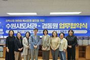 경기헤드뉴스 임수연 기자 | 수원시도서관과 사회복지법인 경동원은 14일 경동원에서 ‘교류 협력을 위한 업무협약’을 체결했다. 공공도서관과 지역 복지기관이 함께 어린이의 독서 접근성을 높이고, 독서 친화적 성장환경을 조성하기 위한 협약이다. 수원시도서관은 경동원 어린이를 위한 독서 활동 프로그램과 도서 기부, 독서 서비스, 공연 등 다양한 독서문화 진흥 사업을 추진할 계획이다. 두 기관은 지역사회 어린이 보육 기관과 연계해 창의력과 표현력을 키울 수 있는 독서교육 프로그램을 운영하고, 교육·문화 협력을 위한 지속 가능한 교류 체계를 이어가기로 했다. ‘아이들을 위한 스토리텔링과 책놀이’ 프로그램을 10월 14일부터 11월 4일까지 매주 화요일 경동원에서 진행한다. 스토리텔링과 책놀이로 어린이의 창의력 발달을 돕고, 교사의 소통 능력을 높이는 내용으로 구성됐다. 이날 협약식에는 김병수 도서관사업소장, 신승주 경동원장, 이명옥 선경도서관장 등이 참석했다. 김병수 도서관사업소장은 “이번 협약은 어린이들의 독서 환경 격차를 줄이고, 누구나 동등하게 독서문화의 혜택을 누리도록 하기 위한 공동의