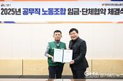 경기헤드뉴스 임채헌 기자 | 시흥시는 지난 11월 26일 시청 다슬방에서 교섭대표 노동조합인 전국민주연합노동조합 시흥지부와 2025년도 공무직 임금ㆍ단체협약을 체결했다. 올해 교섭은 지난 9월 10일 상견례를 시작으로 약 2개월간 총 7차례의 실무교섭을 통해 진행됐으며, 상호 입장을 조율하기 위한 세부 논의를 거쳐 임금 협약과 단체협약 내용이 확정됐다. 임금 및 단체협약에는 ▲2024년 임금 총액 대비 3% 인상 ▲민원 업무 수당 및 위험 근무수당 신설 ▲임금 테이블 통합(사무보조 직군과 영양사ㆍ의료급여 등 전문ㆍ단순 노무 직군을 ‘노무원’으로 통합) ▲경력 인정 기준 신설 ▲휴직 사유 신설 등 다양한 개선 사항이 포함됐다. 이번 합의는 공무직 근로자의 복리 증진과 근무 여건 향상을 위해 노사 양측이 지속적으로 의견을 조율하며 마련한 것으로, 안정적이고 효율적인 근무 환경을 만드는 데 중요한 기반이 될 것으로 기대된다. 김기범 전국민주연합노동조합 시흥지부장은 “같은 시흥시 직원으로서 상생의 자세로 한 방향을 바라볼 수 있도록 협력해 준 시흥시에 감사드린다”라며, “이번 협약을 통해 조합원들이 더 안정적인 근무 환경에서 시정 발전에 기여할 수 있기를 바란다”라