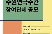경기헤드뉴스 권준형 기자 | 수원문화재단은 지역 공연예술 생태계 활성화와 시민들의 문화 향유 기회 확대를 위해 2026 ‘수원연극주간’에 참여할 문화예술단체를 공개 모집한다. ‘수원연극주간’은 관내 공연예술단체의 공연 실연을 지원하는 사업으로, 올해는 5월 29일(금)부터 6월 28일(일)까지 진행할 예정이다. 이번 공모는 공고일 기준 수원시 소재 공연예술단체라면 지원이 가능하며, 선정된 단체는 수원 관내의 실내외 공간에서 공연을 선보이게 된다. 특히 일부 일정에 한하여 정조테마공연장, 빛누리아트홀, 팔달문화센터 예당마루 등 주요 공연장 3곳의 대관도 지원할 예정이다. 본 공모의 지원 규모는 총 2,500만 원으로, 선정된 단체는 사업 내용에 따라 최대 600만 원까지 차등 지원한다. 참여 희망 단체는 공연 장소와 내용, 홍보 계획 등을 포함한 운영 전반에 대한 신청서를 제출해야 하며, 전문가로 구성된 심의위원회의 심사를 거쳐 최종 선정할 예정이다. 수원문화재단 관계자는 “2026 수원연극축제 기간과 연계하여 진행되는 ‘수원연극주간’을 통해 관내 예술단체에는 무대의 기회를, 시민들에게는 다채로운