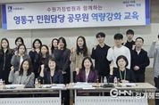 경기헤드뉴스 권준형 기자 | 수원시 영통구는 지난 25일, 영통구청 상황실에서 구청 및 12개 동 민원 담당 공무원을 대상으로 수원가정법원과 함께하는 역량 강화 교육을 실시했다. 이날 특별 초빙된 수원가정법원 박민숙 사무관과 유신임 행정관은 갈수록 복잡하고 다양해지는 가족관계등록사무를 개념부터 관련 법령까지 체계적으로 교육했으며, 업무처리 시 유용한 노하우 공유, 질의응답 등의 시간도 마련했다. 특히 실무에서 자주 접하는 기본적이고 중요한 사례 중심으로 민원 담당자들이 이해하기 쉽게 교육을 통해 실무의 어려움을 해소하고, 신속하고 정확한 업무 처리에 대한 자신감을 높였다. 장수석 영통구청장은“가족관계등록부는 국민의 신분과 정체성을 증명하는 유일한 공적 자료로, 직원들의 전문성 부족이 시민들의 불편으로 이어지지 않도록 수원가정법원과 함께 민원담당 공무원의 역량 강화에 최선을 다하겠다”고 밝혔다. 영통구는 앞으로도 직원들의 전문성과 자신감을 강화하여 수준 높은 민원행정 서비스를 실현해 나갈 계획이다.