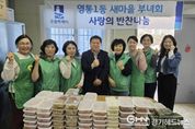 경기헤드뉴스 권준형 기자 | 영통구 영통1동은 지난 3월 25일 영통1동 새마을부녀회가 관내 취약계층을 위한 ‘이웃사랑 반찬나눔 봉사활동’을 실시했다고 밝혔다. 이번 봉사활동은 홀몸 어르신과 저소득 가구 등 돌봄이 필요한 이웃들에게 따뜻한 한 끼를 전달하기 위해 마련됐다. 새마을부녀회 회원들은 이른 아침부터 모여 직접 장을 보고 정성껏 반찬을 만들어 각 가정에 전달하고 안부를 확인했다. 이날 준비된 반찬은 영양을 고려한 밑반찬으로 구성됐으며, 회원들은 단순한 음식 전달을 넘어 이웃들과 소통하며 정서적 지지를 나누는 뜻깊은 시간을 가졌다. 신한길 영통1동장은 “항상 지역사회를 위해 헌신하는 새마을부녀회에 깊이 감사드리며 민관이 협력하여 복지 사각지대를 해소하고 더불어 사는 공동체를 만들어 나가겠다”고 전했다. 한편, 영통1동 새마을부녀회는 반찬 나눔 봉사활동을 비롯해, 관내 환경정화 활동 등 다양한 지역 봉사활동을 꾸준히 이어오고 있다.