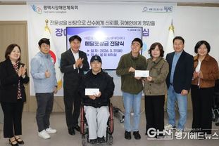경기헤드뉴스 권민성 기자 | 남양주시는 지난 1일 남양주시장애인체육회가 제14회 밀라노-코르티나담페초 동계패럴림픽 휠체어컬링 믹스더블 종목 은메달리스트 백혜진 선수에게 포상금을 전달하고 성과를 격려했다고 2일 밝혔다. 이번 행사는 국제 대회에서 값진 성과를 거둔 선수의 노력과 헌신을 기리기 위해 마련됐다. 이날 전달식에는 백혜진 선수와 배우자인 남봉광 선수, 관계자 등이 참석했다. 행사에서는 포상금 전달과 기념 촬영, 차담회가 진행됐다. 손기남 남양주시장애인체육회 수석부회장은 직접 포상금을 전달하며 축하의 뜻을 전했다. 백혜진 선수는 2022년 베이징 동계패럴림픽 휠체어컬링 6위를 시작으로 꾸준한 성장세를 이어왔다. △2024년 아시아 휠체어컬링 선수권대회 1위 △2025년 코리아 휠체어 믹스더블 컬링리그 1위 △2026년 제23회 전국 장애인 동계체육대회 휠체어컬링 믹스더블 1위 등 우수한 성적을 거뒀다. 이번 대회에서도 은메달을 획득하며 국제무대에서 경쟁력을 다시 한번 입증했다. 손기남 수석부회장은 “백혜진 선수가 보여준 값진 성과는 시민 모두에게 큰 감동과 자부심을 안겨줬다”며 “휠체어컬링