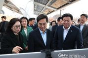 경기헤드뉴스 임채헌 기자 | 시흥시는 3월 16일 시화방조제 자전거길에서 ‘경기 햇빛 자전거길 1호’ 디자인 태양광 조성을 기념하는 준공식이 열렸다고 밝혔다. ‘경기 햇빛 자전거길’ 사업은 자전거길 상부 유휴공간을 활용해 태양광 발전시설을 설치하고 시민 편의시설과 경관 디자인을 결합한 생활밀착형 재생에너지 인프라 조성 사업이다. 사업 대상지는 정왕동 2376번지 시화방조제 자전거길 초입 840m 구간으로, 약 761.6kW 규모의 디자인 태양광 발전시설이 설치됐으며 사업비 약 17억 원이 전액 민간 자본으로 투입됐다. 특히 발전사업을 통해 창출되는 ‘햇빛소득’을 시민 편익으로 환원하는 방식으로 쉼터, 자전거 공기주입기, 운동기구, 야간 경관조명 등 다양한 시민 편의시설도 함께 조성됐다. 이번 사업은 기존의 태양광 설치 방식에서 벗어나 시화호의 물결과 갈매기 비상을 형상화한 웨이브형 디자인 태양광과 LED 경관조명을 적용해 시화호 경관과 조화를 이루도록 조성된 것이 특징이다. 시민들이 휴식과 여가를 즐기면서 재생에너지를 체감할 수 있는 공간으로 꾸며졌다. 이날 준공식에는 김동연 경기도지사와 임병택