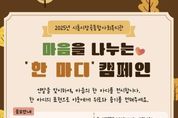 경기헤드뉴스 성미연 기자 | 시흥시장곡종합사회복지관은 연말을 맞아 지역사회에 따뜻한 마음을 전하기 위한 ‘마음을 나누는 한 마디’ 캠페인을 진행한다. 이번 캠페인은 이웃을 향한 응원의 말, 위로의 말, 사랑의 말을 담은 짧은 문장을 시민들로부터 응모 받아 서로에게 위로와 용기를 건네는 나눔의 장을 만들기 위해 마련됐다. 참여자는 직접 창작한 문장 또는 문학 작품 속 인용문 중 마음을 전하고 싶은 한 문장을 제출할 수 있다. 응모 기간은 11월 3일부터 11월 14일까지이며, 시흥시민이라면 누구나 참여할 수 있다. 참여 방법은 시흥시장곡종합사회복지관 1층 복도 현장 신청 또는 온라인으로 하면 된다. 선정된 문장은 내부 심사를 거쳐 캘리그래피 작품으로 제작되며, 오는 12월 시흥시장곡종합사회복지관 복도갤러리에서 전시된다. 전시된 작품은 시민들에게 한 해를 따뜻하게 마무리할 수 있는 작은 위로의 메시지로 전달될 전망이다. 시흥시장곡종합사회복지관 관계자는 “짧은 문장이지만, 시민 한 사람 한 사람의 따뜻한 마음이 모여 이웃에게 큰 위로가 될 것”이라며 “많은 시민이 이번 캠페인에 참여해 따뜻한 시흥을
