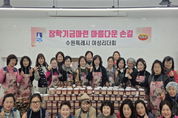 경기헤드뉴스 권준형 기자 | 수원시여성리더회가 5일 행궁동 어울림센터 공용주방에서 ‘장학기금 마련 젓갈 포장 행사’를 열었다. 김미애 수원시여성리더회 총회장과 이지영 수원시여성단체협의회 명예회장 등 회원 20여 명이 참여해 명란젓과 낙지젓 등 4종의 젓갈을 소포장해 판매했다. 수익금은 장학금으로 기부할 예정이다. 김미애 총회장은 “장학기금 마련에 동참해 주신 모든 분께 감사드린다”며 “이번 행사가 학생들의 미래를 응원하는, 작은 힘이 되길 바란다”고 말했다. ‘수원시 여성지도자대학’ 수료생으로 구성된 수원시여성리더회는 2004년 출범 이후 한부모가정 지원, 저소득 중·고등학생 장학금 후원, 복지관 중식 봉사, 소외계층 김장 봉사, 헌혈 캠페인 등 지역사회를 위한 나눔·봉사 활동을 꾸준히 하고 있다.